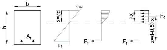 The method for the determination of flexural capacity is based on the assumptions of pre-code EC2 (Figure 11). The compressive strength of FRP bars is ignored.