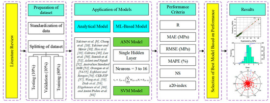 Soft computing approaches have effectively been used in recent years to predict several important properties of RC structures and other different engineering applications [13,14,15,16]. ML algorithms are suitable for solving concrete-like complex problems and developing good relationships between input and output parameters. Nowadays, ANN is employed for estimating universal concerns in numerical models because of their eminent properties to self-learn, adapt, and tolerate faults.