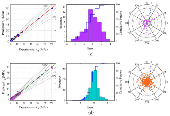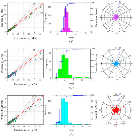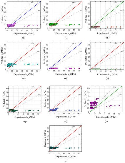 Twenty analytical models were collected from the literature and used to assess the accuracy of the developed ANN model. Most of the commonly used available analytical models that were utilized to estimate the steel-to-concrete BS are summarized in Table 4. For easy understanding and further analysis, the collected analytical models are assigned different model identities. Cabrera [49], Lee et al. [50], Stanish et al. [51], Chung et al. [10], Aslani and Nejadi [52], Yalciner et al. [9], Yalciner and Marar [38], Australian Standard 3600 [53], Orangun et al. [54,55], Esfahani and Rangan [56], CEB-FIP [57], Hou et al. [39], Wang et al. [58], Diab et al. [59], Eligehausen et al. [60], and Amini Pishro et al. [61] are assigned to Models 1–20.