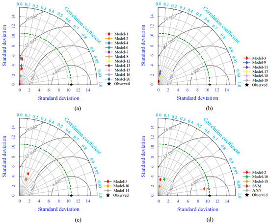 In this section, the results of the analytical models and ANN models are explained individually. The comparison of the analytical results with the ANN model is summarized in the discussion section. A Taylor plot is used to demonstrate the graphical fitting of the analytical and developed ANN models. The ANN mathematical formulation is also expressed in the current section.