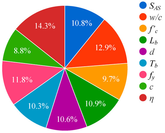 In this research, 476 experimental datasets of corroded steel-to-concrete BS were collected from previous studies. All the experimental data were of the pullout test without any stirrups or transverse reinforcement bars provided [8,9,10,11,12,35,36,37,38,39,40,41,42,43]. This study took nine input parameters into account; surface area of the specimen (SAS), water/cement ratio (w/c), CS of concrete (f ′c), concrete cover (c), bond length (Lb), diameter of reinforcement bars (d), type of reinforcement bars (Tb), yield strength of reinforcement bars (fy), and corrosion level of reinforcement bars (η) to predict BS (τu), which represents the output parameter. Table 2 lists the details of the collected database that includes the series of input and output parameters. The range of BS in the database was from 0.19 to 91.42 MPa and the corrosion level varied from 0 to 22.90%. Table 3 presents the statistical parameters of the collected database, such as mean, minimum, maximum, and standard deviation (Std.) values.