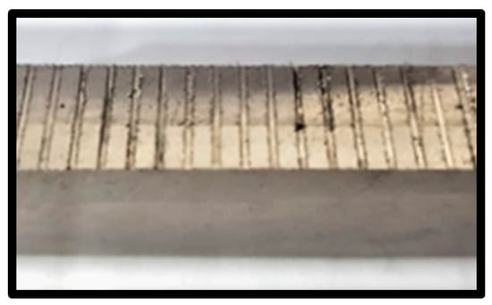 The dimensions of the work piece, 146 mm × 10 mm × 22 mm, were prepared using EDM (KNUTH, Hamburg, Germany). Experiments were conducted with a 10 mm slot in the cutting length to reduce tool wear. Figure 2 shows the slot spacing, kept at 2 mm. The first step was to grind and polish the material. Kalling’s waterless itching agent was used for about 5 s before being washed away with water. Using a digital microscope (Olympus DXS1000, Olympus Corporation, Tokyo, Japan) and the ASTM standard method, the average grain size was determined to be 23.4 µm. The Vickers hardness of Inconel 718 was found at 361 HV using a Vickers Micro hardness tester (HAIDI, Dongguan, China).