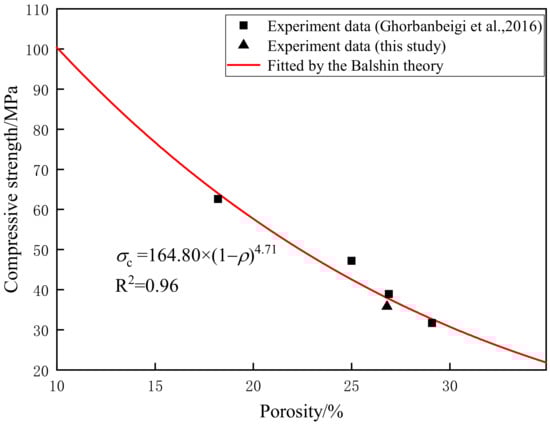 Relationship between compressive strength and porosity. Experiment data Ghorbanbeigi et al. [].