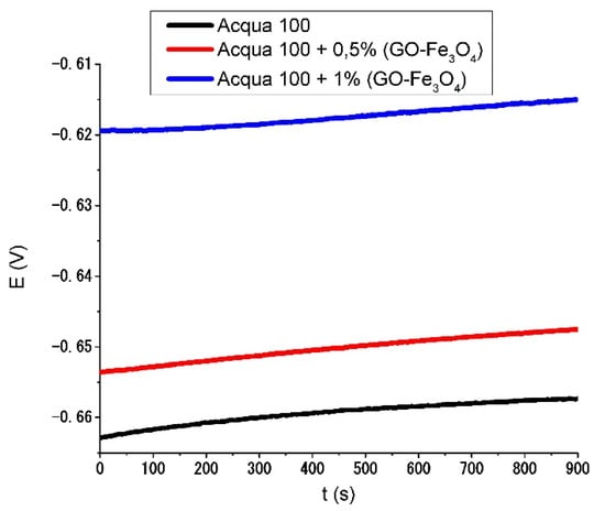 The Fe3O4–GO-Acqua100 compound was developed and used as an anticorrosive coating on the surface of ASTM A-662 steel samples. The materials used are detailed in Table 2.