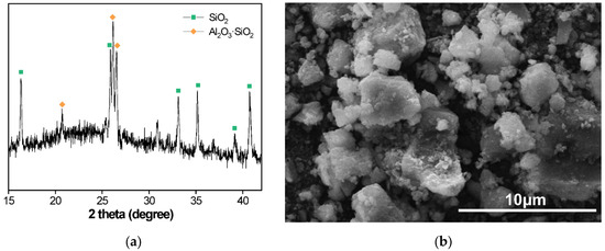 (a) XRD pattern and (b) SEM image of recycled concrete fines.