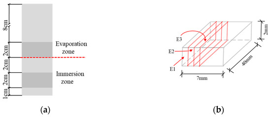 Sampling method of the specimen. (a) Different zones of the specimen. (b) Sampling in evaporation zone.