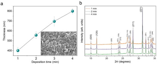| Deposition Time | JSC, mA/cm2 | VOC, mV | FF, % | PCE, % | Thickness, nm | Limit JSC, mA/cm2 |