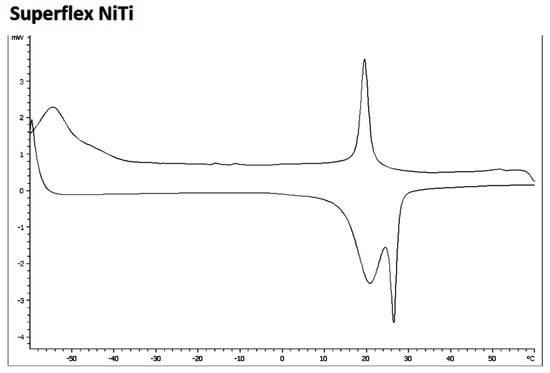 - Yahata, Y.; Yoneyama, T.; Hayashi, Y.; Ebihara, A.; Doi, H.; Hanawa, T.; Suda, H. Effect of heat treatment on transformation temperatures and bending properties of nickel-titaniu.um endodontic instruments. Int. Endod. J. 2009, 42, 621–626. [Google Scholar] [CrossRef]