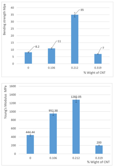 Bending strength and Young’s modulus values for the CNT–PU composites studied.