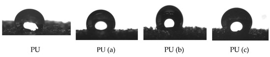 The contact angles of the prepared samples were measured to assess the oleophilic and hydrophobic character or wettability of polyurethane (PU) for oil spill cleanup.