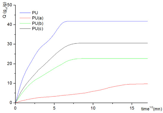 In order to further increase the adsorption capacity of materials with high adsorption capacity and good selectivity, the introduction of these precursors as additives in the matrix of porous polymers [13], such as resins [14,15], foams [1,16], sponges [17,18], and aerogels [19,20,21] has also attracted interest. Polyurethane (PU) composites with honeycomb structure [22], PU–clay [23], PU–carbon [24], and PU–graphene [17,25] have recently been investigated for the separation of water–oil systems.