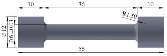 The tensile tests were conducted via a Zwick Z250 tensile testing machine (Zwick Roell Group, Ulm, Germany) using a cylindrical sample, with dimensions as shown in Figure 3, according to the ASTM E8 standard. Three tensile samples were tested for each alloy, and the mean of the three results was utilized to calculate the reported value. The tensile tests were performed at a crosshead speed of 5 mm/min. Each alloy’s tensile characteristics, such as tensile strength (σu, MPa), and elongation (δ, %), were determined via the tensile test. HB of the investigated alloys was carried out by the Universal Hardness Testing Machine KB 3000 (Germany, KB Prüftechnik GmbH, Hochdorf-Assenheim). According to the ASTM E10 standard, the test conditions were ball indenter diameter = 2.5 mm, testing load = 612.9 N, and holding time = 30 s.