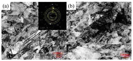 Grain refinement was an effective means to improve the mechanical properties of nickel metal materials, and nanocrystals can improve the strength and hardness of metal nickel compared with coarse crystals. In addition, small amounts of dislocations and twins were observed inside the nanoparticle crystalline material. The presence of smaller grains and more grain boundaries in nanocrystals hindered the movement of dislocations during plastic deformation, and nanotwins with very fine thicknesses could also increase the strength of the material [39,40].