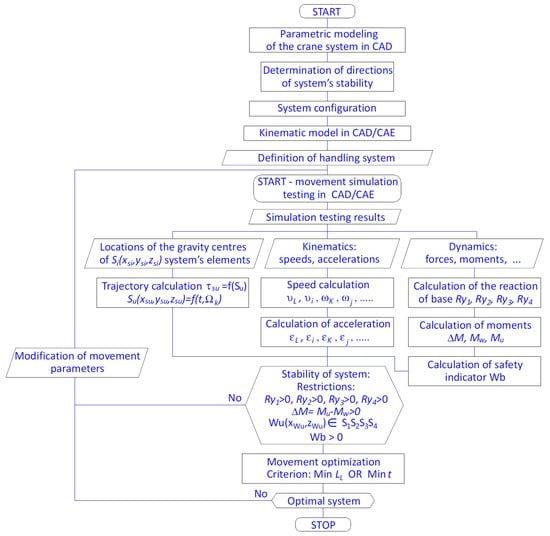 Block diagram of computer-aided assessment of the stability of the crane handling system [31].
