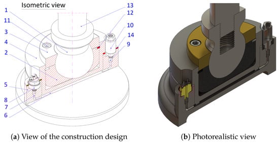 In order to control the reaction at the outriggers, a special construction of the outrigger of a crane device was developed [45]. It is equipped with a hydraulic system measuring the pressure transferred by the outriggers, where the outrigger’s foot features an elastic sleeve with a membrane and incorporated pressure sensor, coupled with a measuring system that constitutes an integral part of the crane device system [46] (Figure 3).