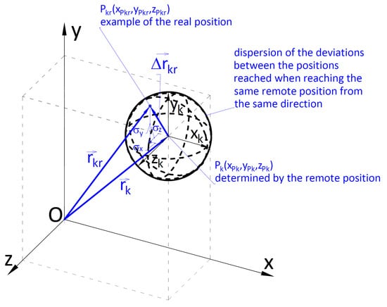 The value of the indicator of the accuracy of positioning, depending on the indicators , , and is expressed with the Formula (27):