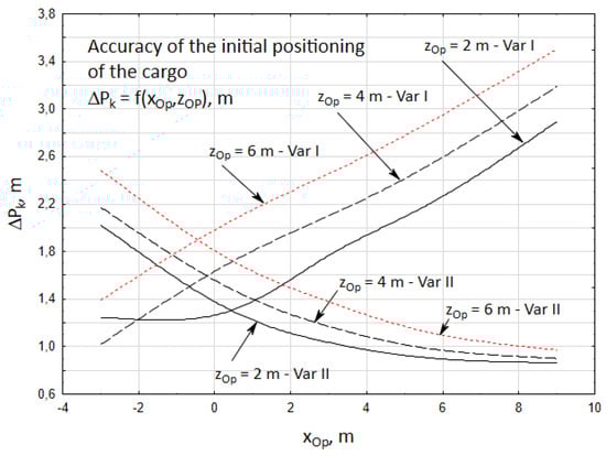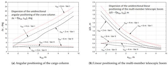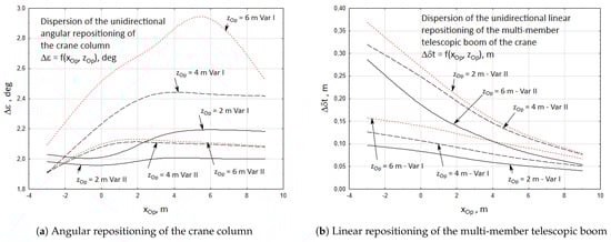 The results of the numerical calculations have been presented in Figure 11. The graphs show the relation between the operator’s position and the accuracy of unidirectional positioning of the crane’s working members.