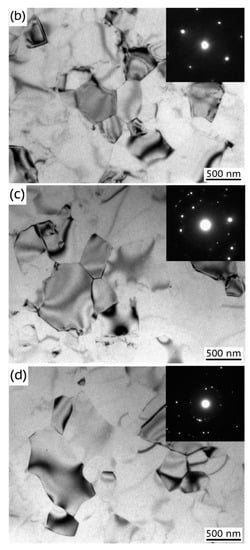 - Humphreys, F.J. Quantitative metallography by electron backscattered diffraction. J. Microsc. 1999, 195, 170–185. [Google Scholar] [CrossRef]