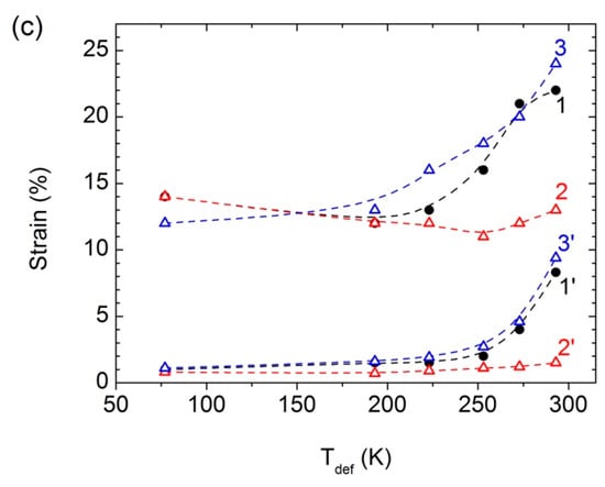 Similar to the AIH effect, the DIS effect also decreases with decreasing Tdef (Figure 5c). Moreover, the DIS effect completely disappears at Tdef = 193 K. These data correlate well with similar results previously obtained for CP Al [] which may indicate a similar nature of this effect in CP Al and the Al–0.4Zr alloy.