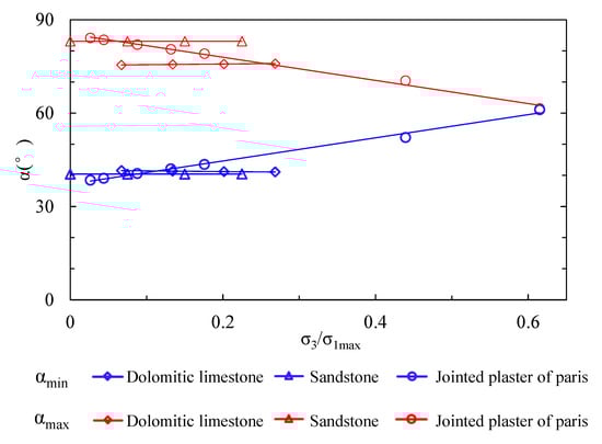 - The possibility of anisotropic structural plane-controlled rock strength as confining pressure increases is not definite but theoretically related to the comparison between and ;