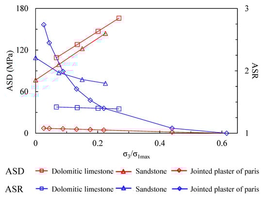- Likewise, the tendency of strength anisotropy degree with increasing confinement is not definite either. As confining pressure increases, the anisotropic strength ratio (ASD) always decreases, while the anisotropic strength difference (ASD) increases or decreases depending on the friction strength of the rock block and anisotropic structural plane;