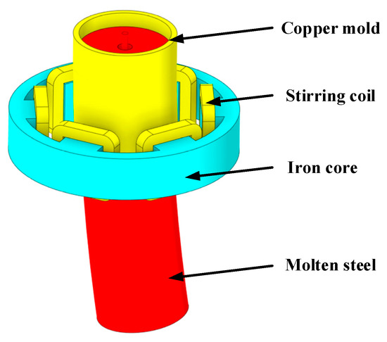 - A simplified electromagnetic stirrer structure was adopted, and air was used instead of cooling water, stainless-steel protective sleeve, and insulating material in the electromagnetic stirrer;