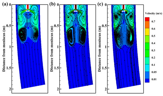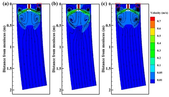 3.2.1. Effect of Nozzle Structure on the Steel Fluid Flow