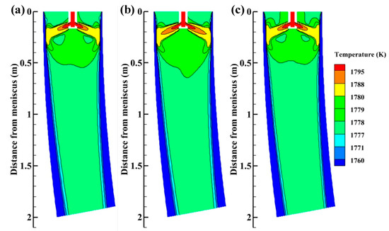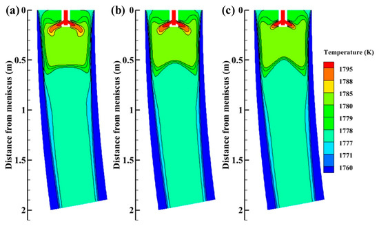 - The high-temperature molten steel was assumed to be an isotropic and Newtonian incompressible fluid, and the viscosity, specific heat capacity, and thermal conductivity were assumed to be constant;