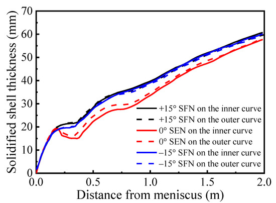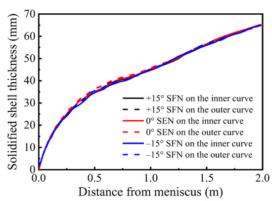 - The horizontal swirl produced by SFN reduces the washing of the high-temperature molten steel on the initial shell and eliminates the uneven growth of the solidified shell caused by mold curvature.