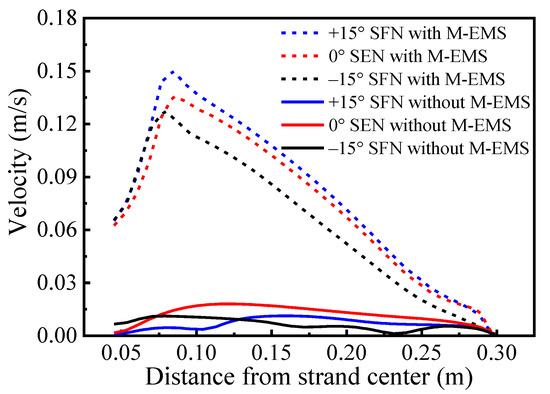 3.3.1. Effect of M-EMS on the Steel Fluid Flow