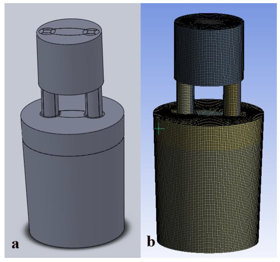 - Inlet boundary: each nozzle was set as an inlet boundary, and the volume fraction of water was set to 0; the mass flow rate of air was set to 1.76 Nm3·h−1. The velocity direction of air was set perpendicular to the interface, the volume fraction of air was set to 1 and the temperature was set to 25 °C.