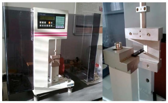 The determination of the unnotched impact strength by the Charpy method was carried out under the conditions specified in the STS EN ISO 179-1 standard. Before the test, the span of the instrument brackets was set, and the instrument was calibrated. Afterwards, a hammer was let down loosely to determine the friction losses. At the same time, it was checked whether the Ceast Resil 5.5 (Figure 1) instrument was able to perform the test at the prescribed impact velocity and whether it was in the correct range of the absorbed energy. For the purposes of the experimental measurement, we used an impact hammer with a nominal energy of 5 J for the PBT material before exposure to elevated temperature. A hammer with a nominal energy of 2 J was used for the PBT after exposure and the PPA before and after exposure [16,17,18].