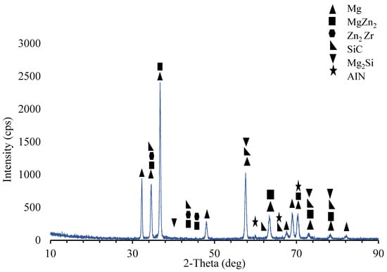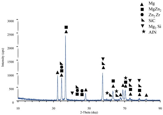 XRD patterns of the ZK60 SiC15 AIN0.2 composite.
