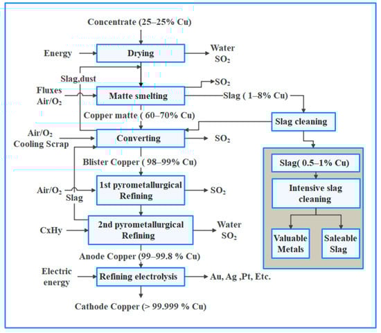 Pyrometallurgical copper extraction flow chart [].