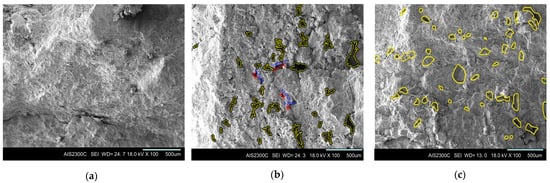 When CS replaces part of the fine aggregate, it can also improve water absorption of CBMs, but there is an optimal mixing ratio. Al-Jabri et al. [] found mixtures that replacing fine aggregate with 40% CS demonstrated the lowest surface water absorption, which was the optimal mixing ratio. When the mixing amount of CS exceeded 40%, the concrete surface water absorption increased with increasing of CS content. Brindha et al. [] also came to similar conclusions that substitution of sand with 40% CS decreased water absorption most significantly. As shown in Figure 13, the pores in concrete are increasing as the CS content beyond 60%, so the water absorption is enhancing, which will influence the strength of concrete with CS. Excessive CS content caused an increase in content of free water resulting in more voids in concrete; therefore, 40–50% CS is recommended as a partial replacement for fine aggregate [,,,].