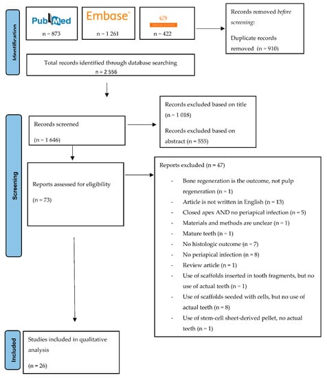 Chicago/Turabian StyleTirez, Elisabeth, and Mariano S. Pedano. 2022. "Regeneration of the Pulp Tissue: Cell Homing versus Cell Transplantation Approach: A Systematic Review" Materials 15, no. 23: 8603. https://doi.org/10.3390/ma15238603