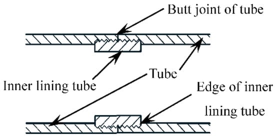 The thread uses the simple mechanical incline principle, and it is used reasonably. In the production process, standardized pipelining can be adopted. It is convenient to assemble in the construction process, which greatly saves the construction period and fully ensures the structural quality. At present, a threaded connection has been widely used in machining, industrial production, and assembly manufacturing, and it reached technological maturity. Therefore, this paper attempts to apply a threaded connection to the extension of steel tubes in concrete-filled steel tube structures. If the steel tube is directly connected with internal and external threads, the threaded connection will be weakened by at least 50%, thereby reducing the bearing capacity. In order to avoid this situation, the inner lining tube was designed as an excessive connection tube, as shown in Figure 2.