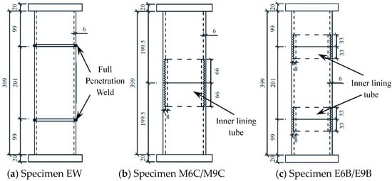 The schematic diagram of steel components of some specimens is shown in Figure 3, in which the unit of dimensions is mm.