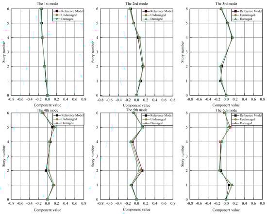 where denotes the flexibility submatrix with respect to the measured DOFs; denotes the truncated flexibility submatrix; Nm denotes the number of selected low-frequency modes (frequency from low to high and no interval in this research); and denotes the incomplete mode shapes. Needless to say, is supposed to be as close as possible to ; if all the DOFs of a structure are well observed and all the mode shapes are gained, will be exactly equal to .