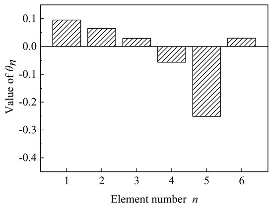 where is also a constant like . As the prior PDF follows a non-informative uniform distribution, the posterior PDF can be written in a similar form as the likelihood function in Equation (14) Given that the observed DOFs are limited, the SEREP method will be utilized here and then the measured mode shapes are mass-normalized with respect to the reduced model mass . It is easy to see that depends on only and so does the posterior PDF . On this basis, the most probable stiffness parameter vector can be gained by maximizing the posterior PDF value or minimizing its negative value. Here, the objective function is defined as a truncated part of Equation (14) and is simplified with the following logarithm: