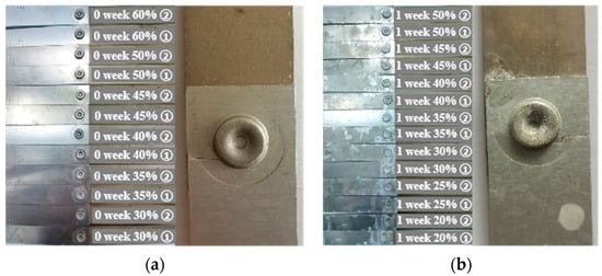 Appearance of the joints at different corrosion times of (a) 0 weeks; (b) 7 weeks.