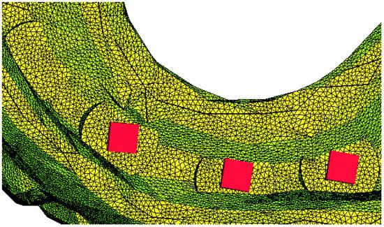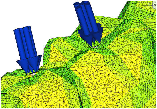 The way in which the loading was carried out was like a pressure on the surface of a small fictitious cylinder. The aim was to avoid the concentrated force effect, and the loading was carried out on the axis of the teeth (Figure 2).