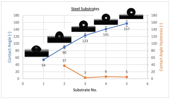 Surface wetting of S1, S2, S3, S4, and S5 samples (steel substrates).