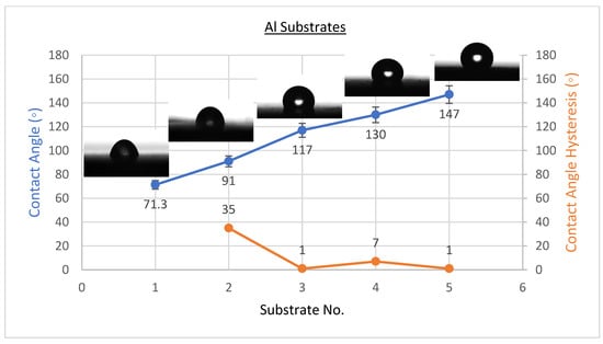 Surface wetting of A1, A2, A3, A4, and A5 samples (Al substrates).