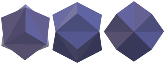 The trisoctahedral gold nanoparticles were synthesised by a seed-mediated growth. The Au seeds were stabilized by CTAB and, in consequence, single-crystalline Au seeds were formed, in contrast to citrate-stabilized Au seeds, which are pentatwined. The single-crystalline Au seeds result in more favourable growth into anisotropic shapes. During the growth process, the CTAB was replaced by CTAC. With CTAB, the main product was identified as Au nanocubes. However, the reaction yield and stability are not as high as for Au trisoctahedrons. The Au NPs of bigger sizes were synthesised from the trisoctahedrons of smaller size. The considered shape could be understood as an octahedron with triangular pyramids on each side (Figure 7).