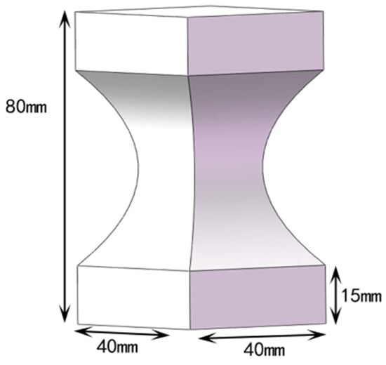 A quadrangular model with a gradually reduced cross-section was designed as a test model using SolidWorks 2016, as shown in Figure 1. The total height of the test model is 80 mm, and the upper and lower ends are cuboids of 40 × 40 × 15 mm3. The cross-sectional area between the two cuboids gradually shrinks symmetrically from both ends to the middle, and the cross-section is the smallest at half its height, which is a square of 20 × 20 mm2. The quadrangular model is partially filled, and the top and bottom of the model are not covered with a shell to observe the inner infill structure conveniently.