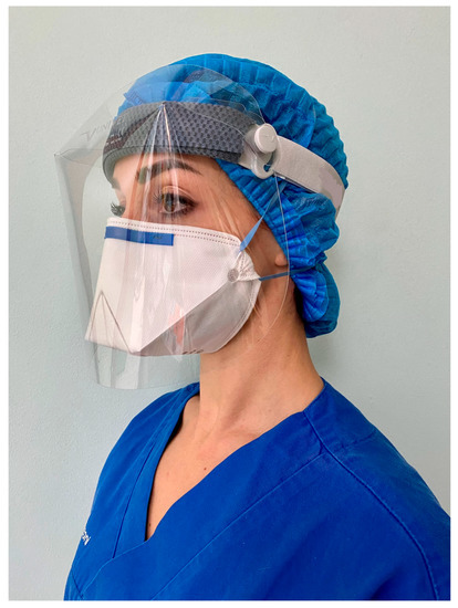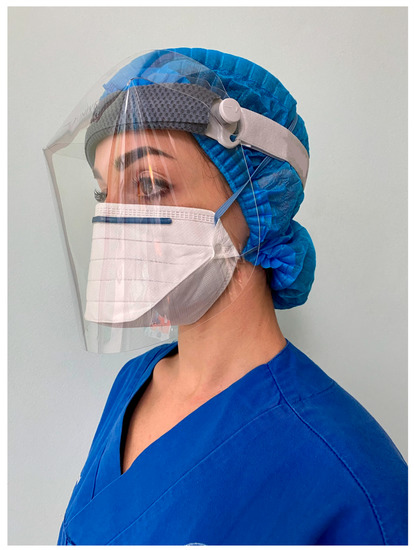 Regarding spatter protection, the regular use of face shields is considered essential to limit the face masks’ external contamination [13,14]. These devices are a very important personal protection that has long been proven to be concretely capable of protecting the operator’s face from splashes [2,15].