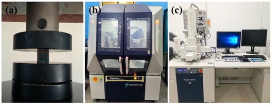 Figure 1. (a) Uniaxial compression test; (b) XRD test; (c) SEM test. - (2)