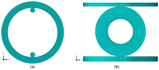 FEA model: (a) O-ring tension and (b) O-ring compression test.