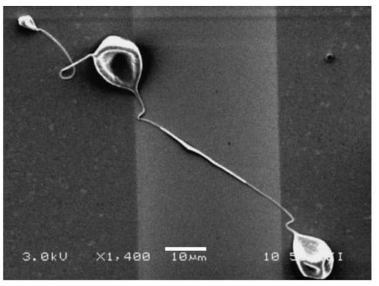 SEM showing a neat electrospun P3HT nanofiber having an average length of 54 µm and diameter of 670 nm [176]. Reprinted with permission from Ref. [176]. Copyright 2005 with permission from Elsevier.
